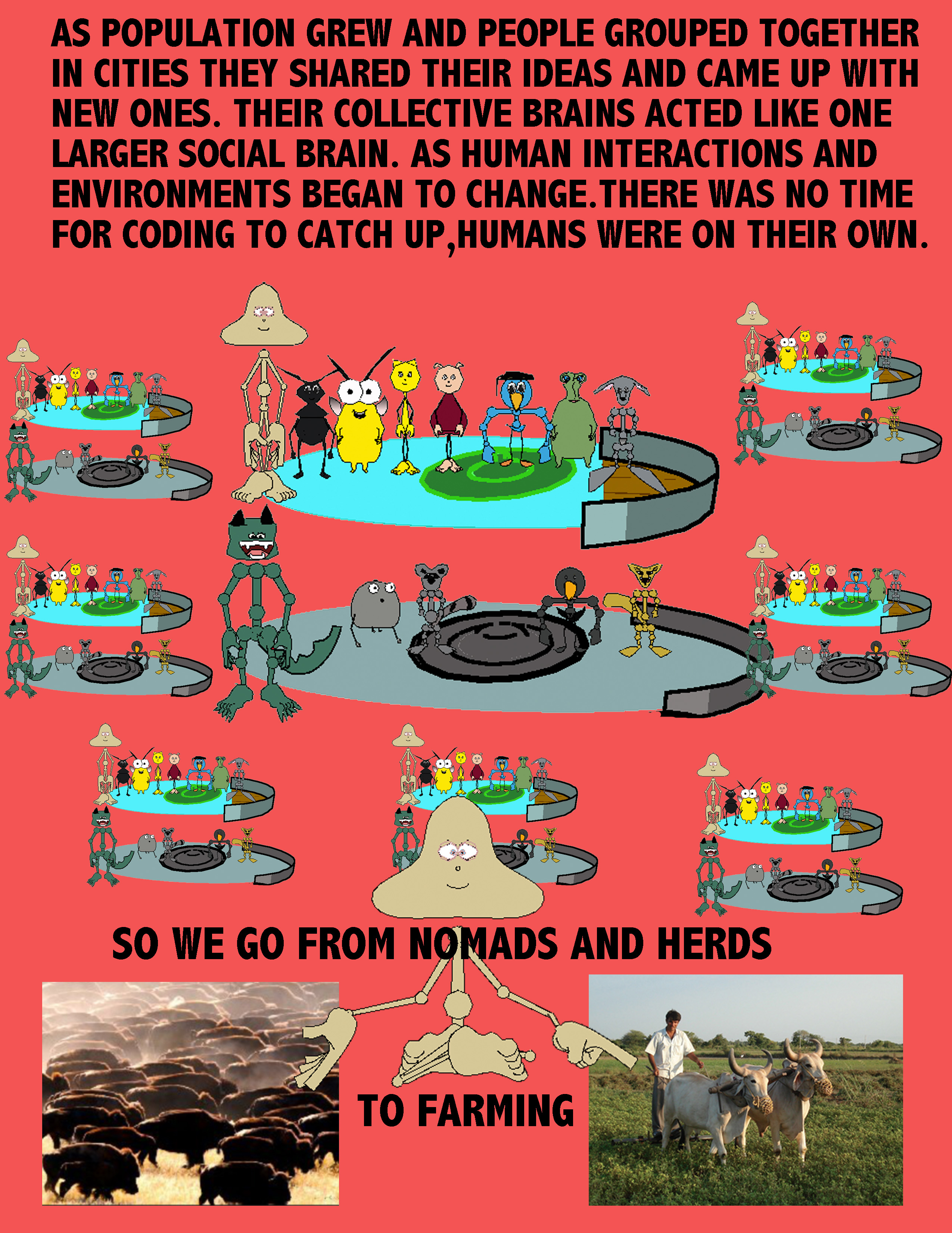 Some changes are needed that nature did not code into DNA programs. DNA gives us the brains to make those changes faster and more complex then ever before. It is as if the combined brains of many become a larger more complex shared brain.