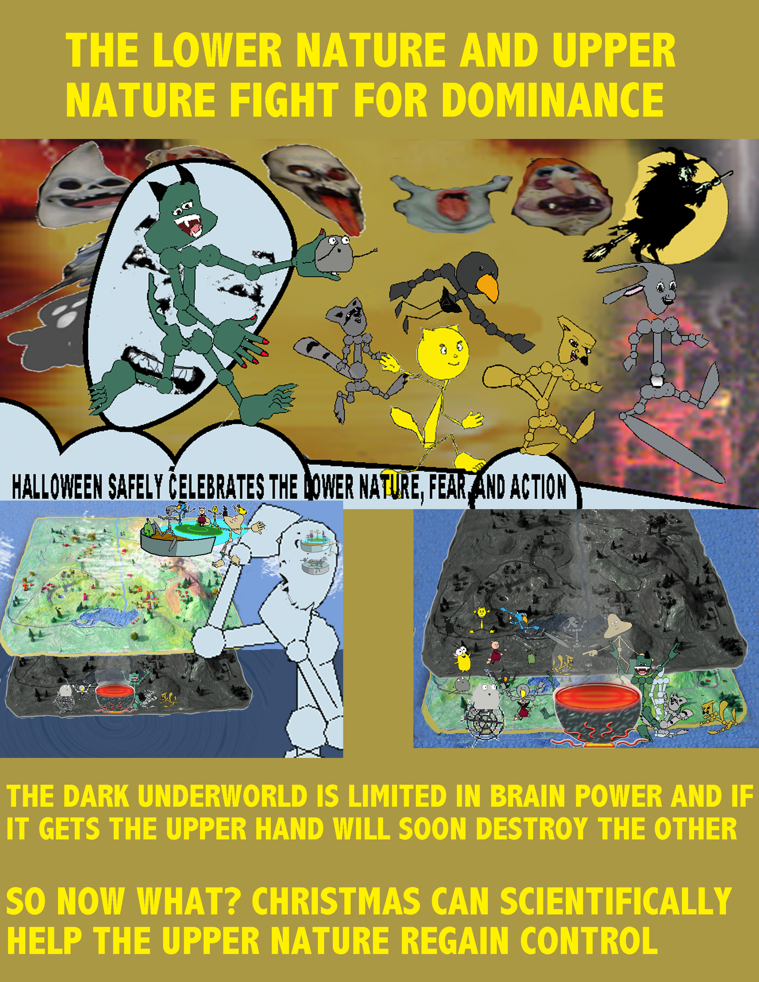 You may ask how Christmas can bring relief to the sad and weary. It is built into our DNA to respond to certain environments with more energy, pleasant, and invigorating responses. When fear and the Lower Nature has commandeered all the Upper Widgets but the three left and seen below, how does our conscious choice get the others back so our Upper Nature gets back into control?