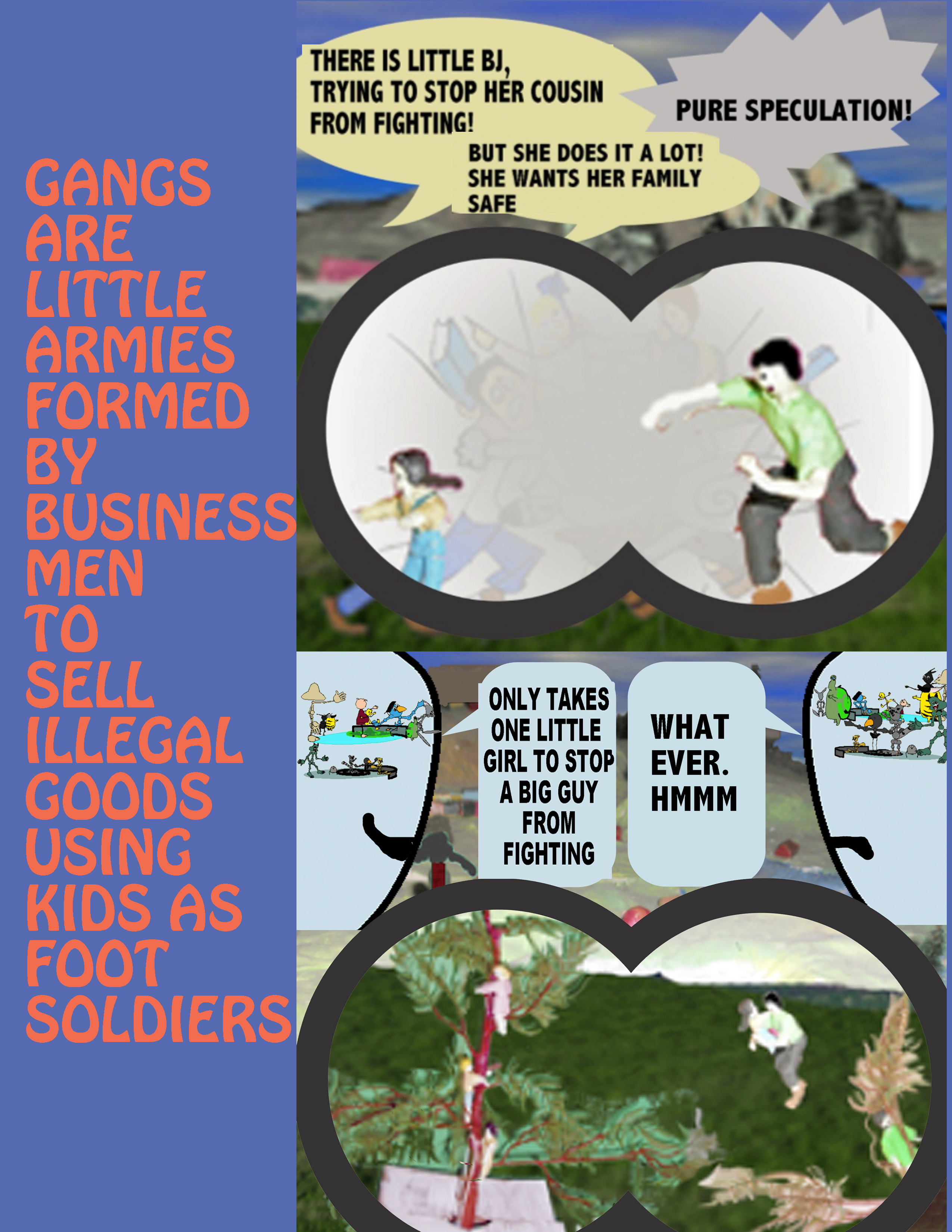 Many of our children get into the wrong crowds that do mischief. Unsavory people can put them up to gang behaviors to sell their addictive goods, such as drugs or stolen good. Grandma is looking at the fight with her Upper Nature and Grandpa with his let anything go attitude and cynicism.